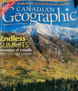 (29:49) As for other thoughts about the changes over the years, actually Christine, now that I’m thinking about it … That’s why at the end (of my write up) I comment on how lucky I was to have the years that I did with the Warden Service…Well, I’ve been gone 10 years now since retirement (2008), but when I see…other staff that are left in the outfit, and in my opinion, are pretty well three quarters of a way through their career, age and years of service wise, they had no choice but to adapt to the managerial changes as a result of that whole side arm issue. (In response to the comment, “So many people I’ve interviewed say that, that they feel they were there at the best of times.”) There are many magazine articles, in fact I was just going through some that I still have, written by a particular writer, Ed Struzik, who worked with the Edmonton Journal, Canadian Geographic and Equinox publications, as well as others. Ed’s quite renowned as a journalist and you will hear of him more recently, he’s written a book called Fire Storm. It’s concerned for instance about the mountain pine beetle (damaged) trees. Jasper is in trouble from a forest fire perspective. The hazard is way up there and he’s written a book on it. He was a naturalist up in Kluane, way back in the 1970s for a short time. But he lives in Edmonton and he took a liking to natural history and ecosystem management…Back in 1999 actually, my CPW (Brian Wallace) and my Superintendent (Ron Hooper) said, “Take this Edmonton Journal writer out on a backcountry trip in Jasper.” So away we went. I had no knowledge of what this was going to be. We went out for five days up to the Willow Creek & Little Heaven area, of the North Boundary. Ed took pictures and he was looking through the cabin warden diaries or logbooks each night and was making notes from the entries. Due to media industry changes, Ed’s story came out in 2001 under the Canadian Geographic (magazine)…That surprised me!. I was able to get a little mileage out of it whilst I was running my personal home accommodation business in my own house in Jasper.