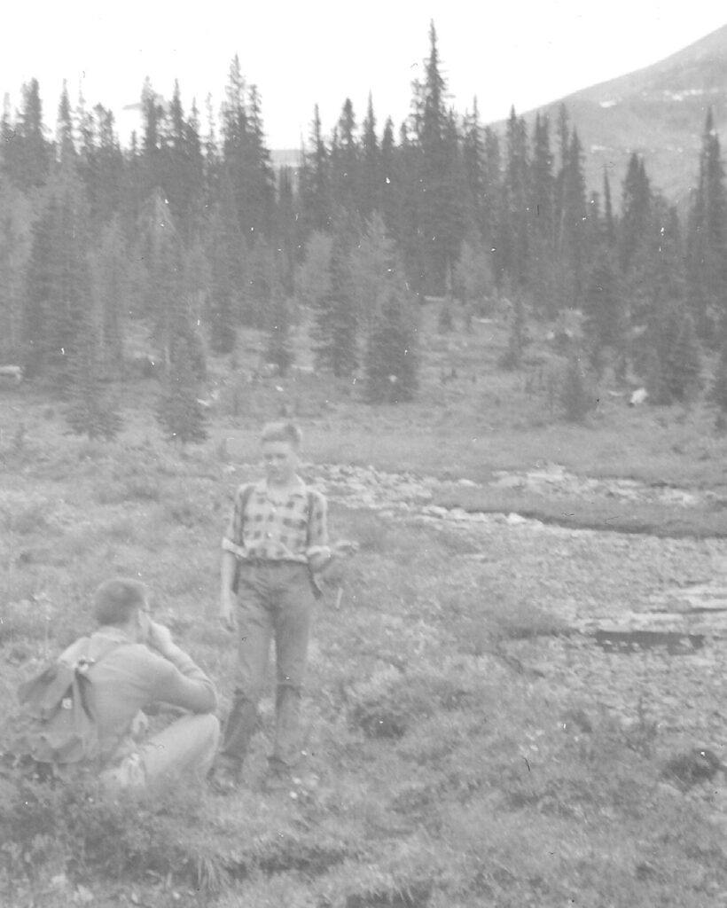 Case Vanderwolf (left) and Mike Carleton near Lower Eisenhower Lake (Tower Lake) in 1959. Photo: Herb Cerezke